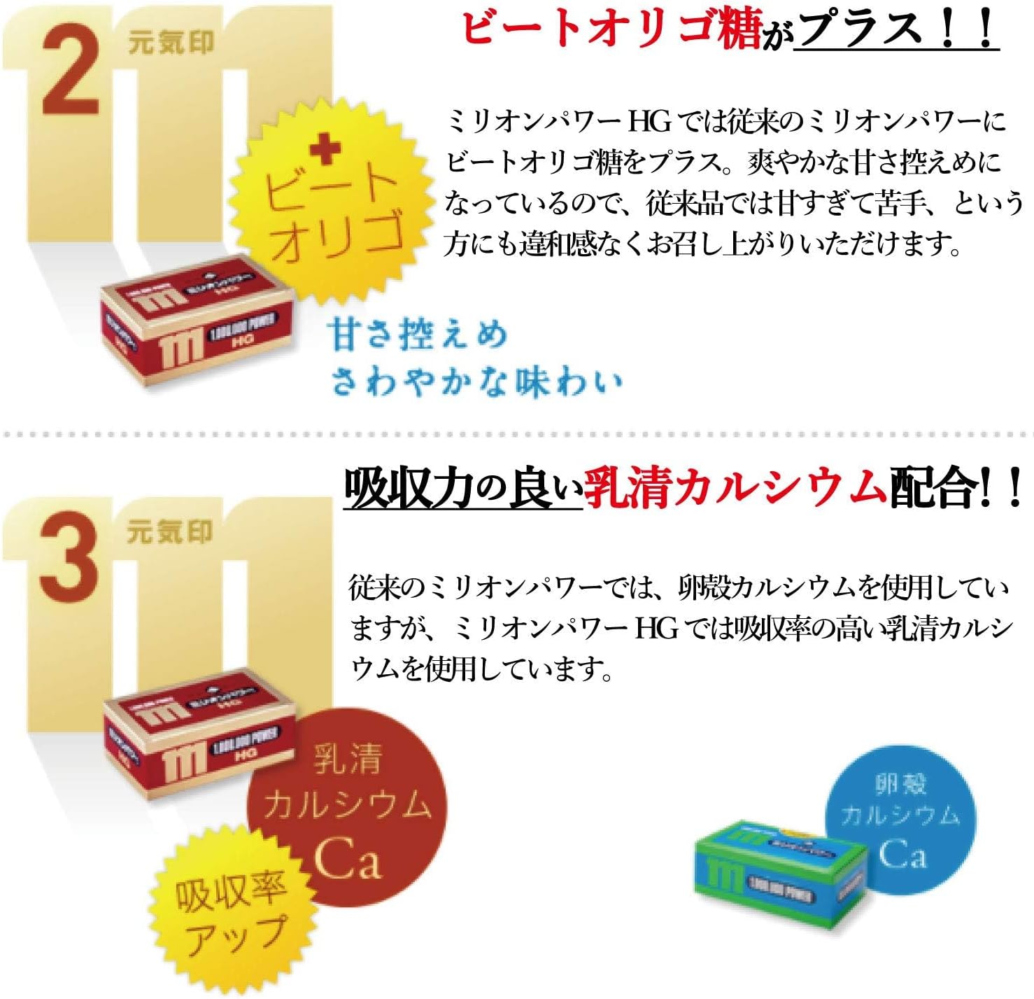 ミリオンパワーHGでは、従来のミリオンパワーに ビートオリゴ糖がプラス。さわやかな甘さ控えめになっているので、従来品では甘すぎて苦手、という方も違和感無くお召し上がりいただけます。