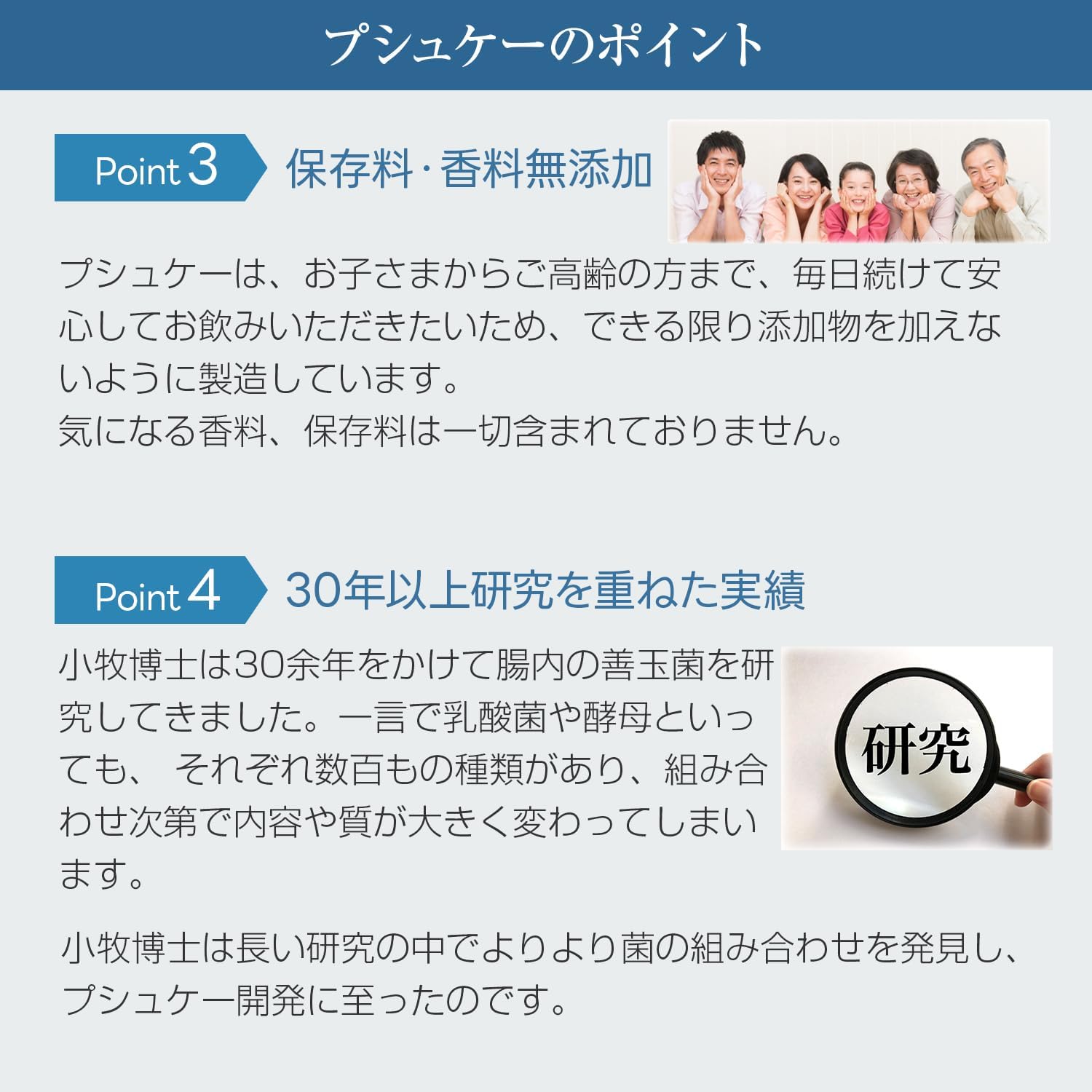 【安心の保存料・香料無添加】プシュケーはお子さまからご高齢の方まで、毎日続けてお飲みいただきたいため、できる限り添加物を加えないように製造しています。気になる香料、保存料は一切含まれておりません。